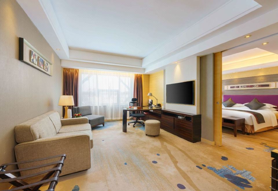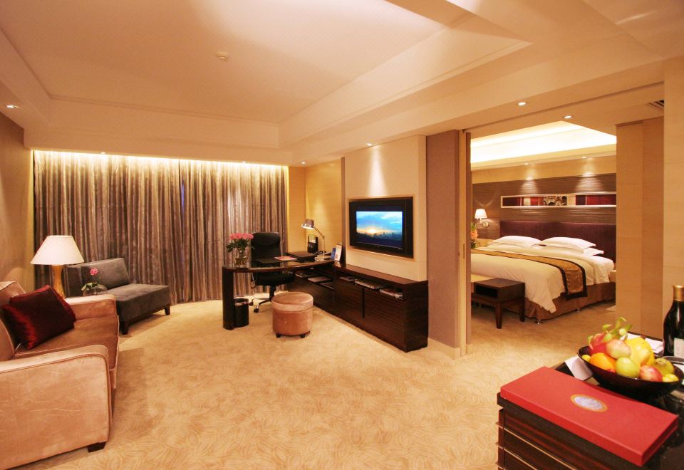 金座商務套房+超大空間+暢享舒睡斯林百藍床墊+超大浴缸+繁華夜景